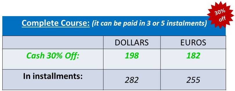 In both modalities, you will have access to our Virtual Campus where you will do some practice online and check the assignments after each class. Study notes for each lesson are available there.