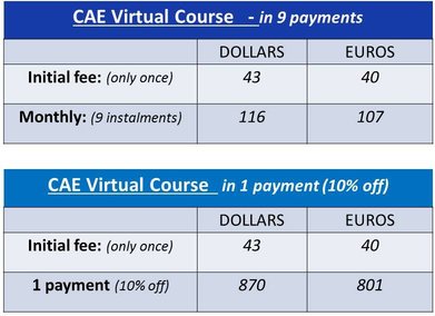 You can combine this course with others specific to your needs Phonology & Pronunciation, Speaking CAE - Exam preparation – 5 Live Sessions, Advanced Grammar (Language Awareness) , Getting your writings corrected at CAE